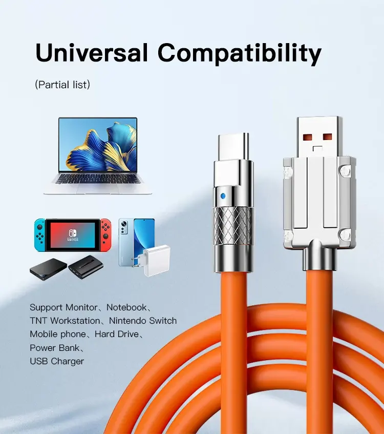 Câble USB-C en alliage de zinc de 1 m, super rapide 6A 120W, câble de charge et de données intelligent pour téléphones Android, imprimantes, USB 2.0 Type C, style populaire