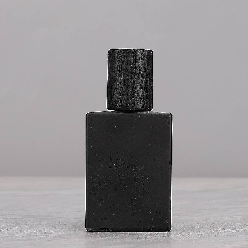Nom du produit:30ml vide bouteille en verre de parfum noir mat avec couvercle en bois