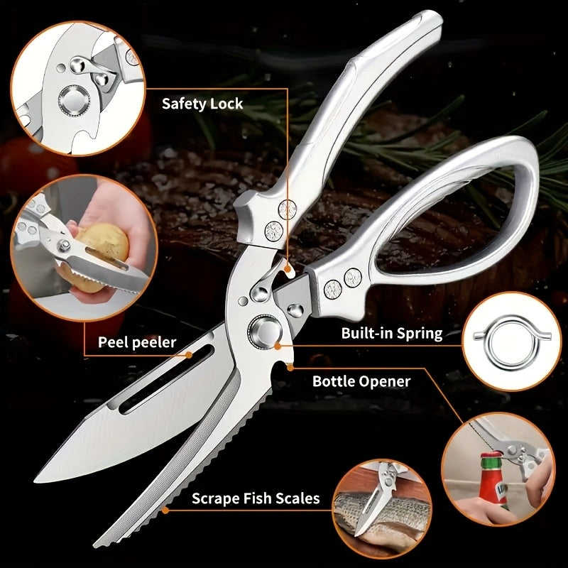 Ciseaux de cuisine en acier inoxydable 3CR, 1 pièce, ciseaux à os robustes automatiques, poignée ergonomique lisse, outil essentiel pour la maison, usage intensif
