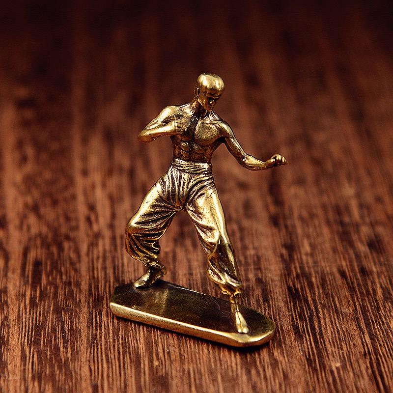 1 pièce, objet de décoration créatif pour la maison, Kung Fu chinois, Bruce Lee, en laiton, mini objet de décoration de bureau personnalisé, cadeau