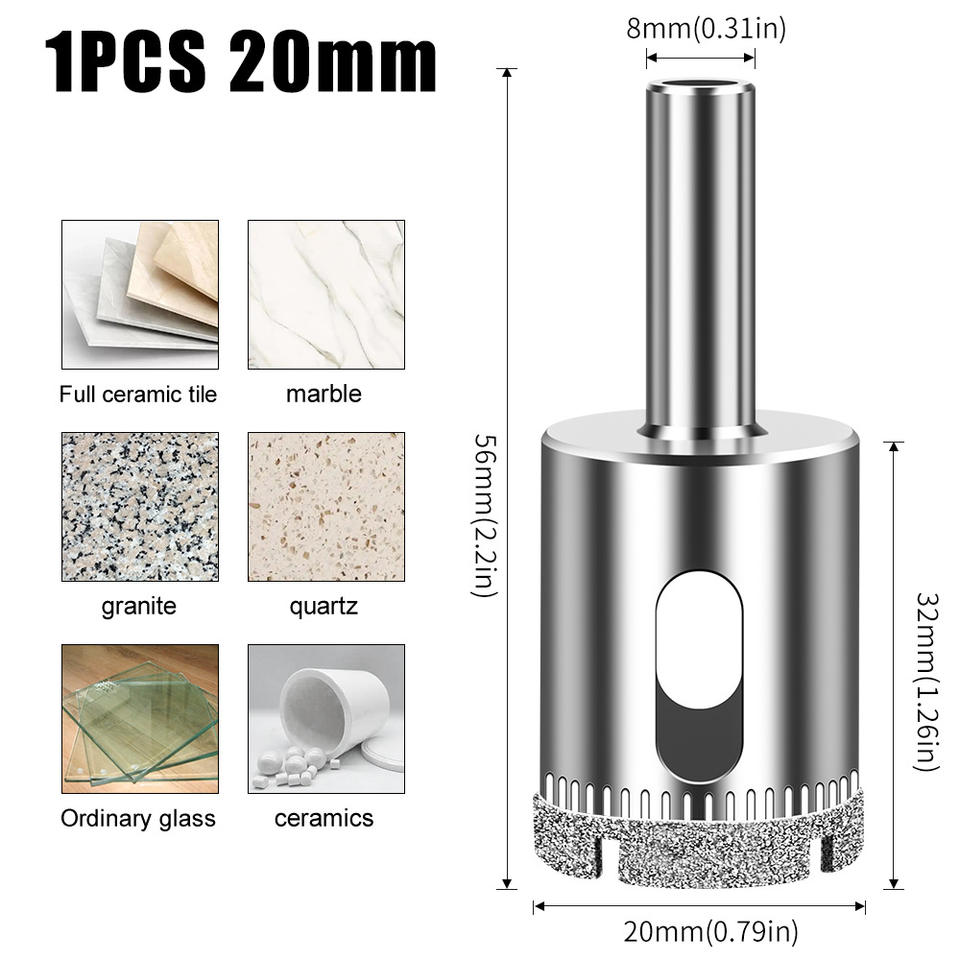 Foret diamanté pour carrelage en verre, ouvre-trou diamanté, diamètre de la tige 3,2 mm/8 mm/9,8 mm, longueur 56 mm, pour le perçage de la maçonnerie