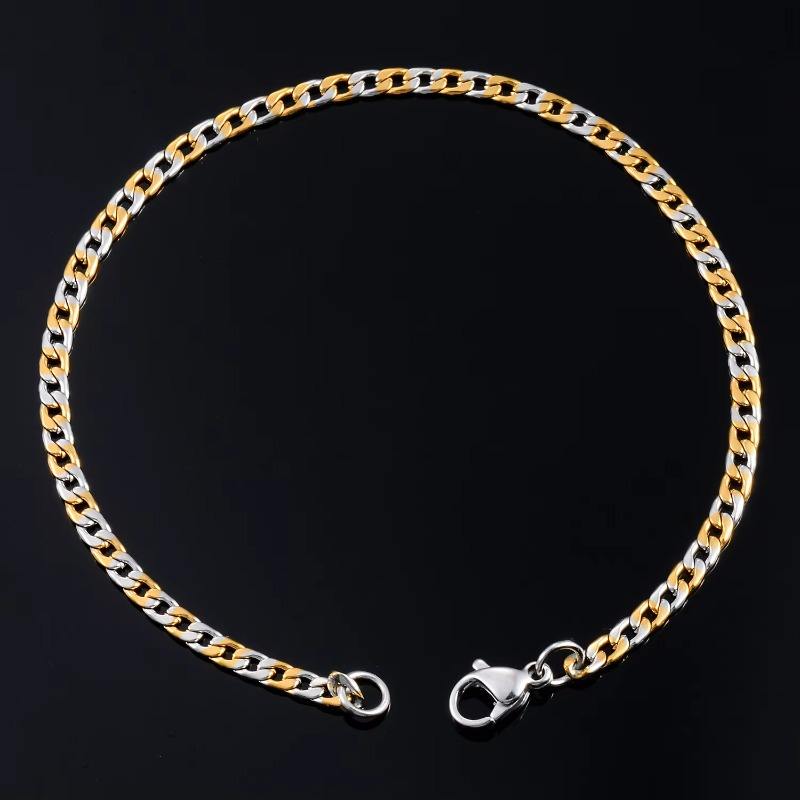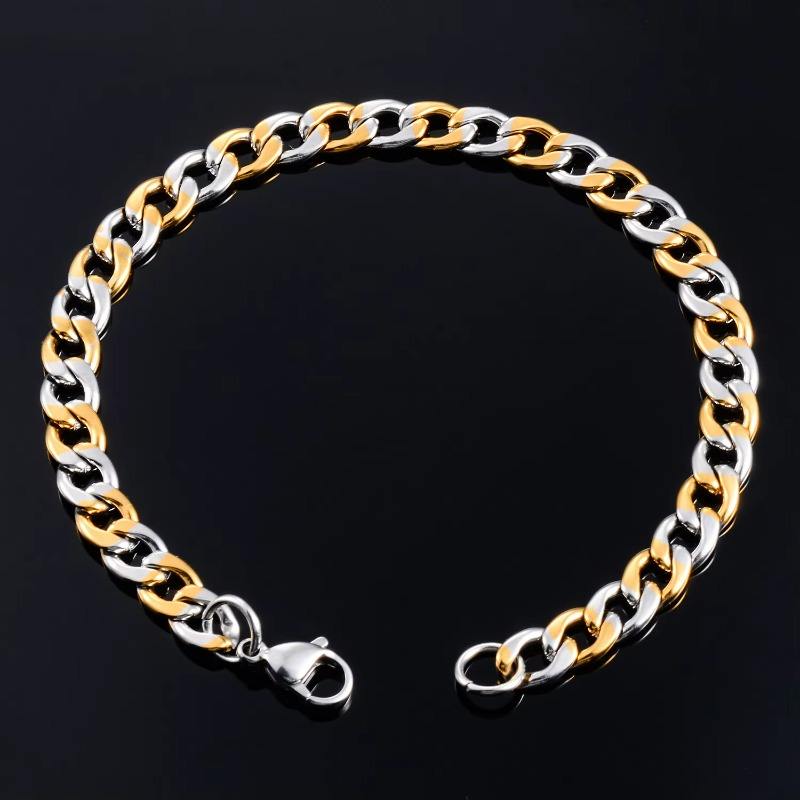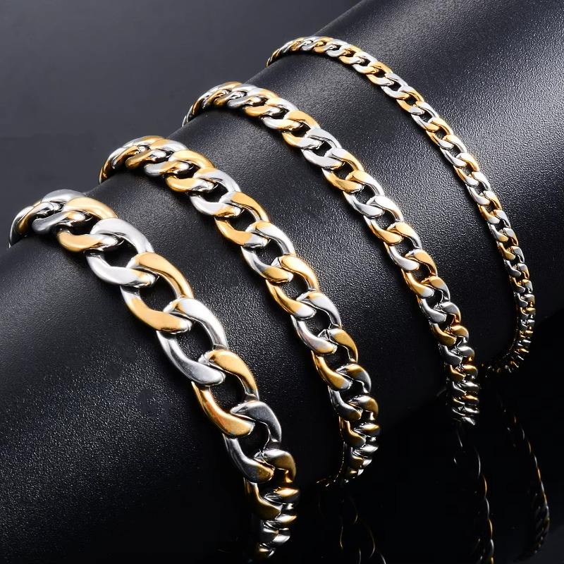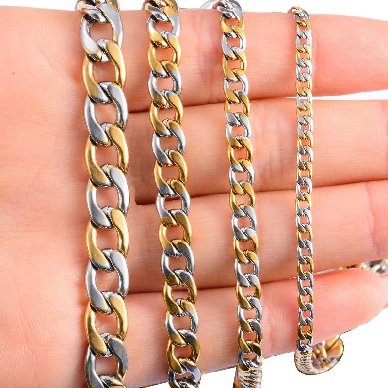 1pc Bracelet unisexe en acier inoxydable plaqué or, chaîne cubaine, couleur argent et or, bijoux tendance style punk