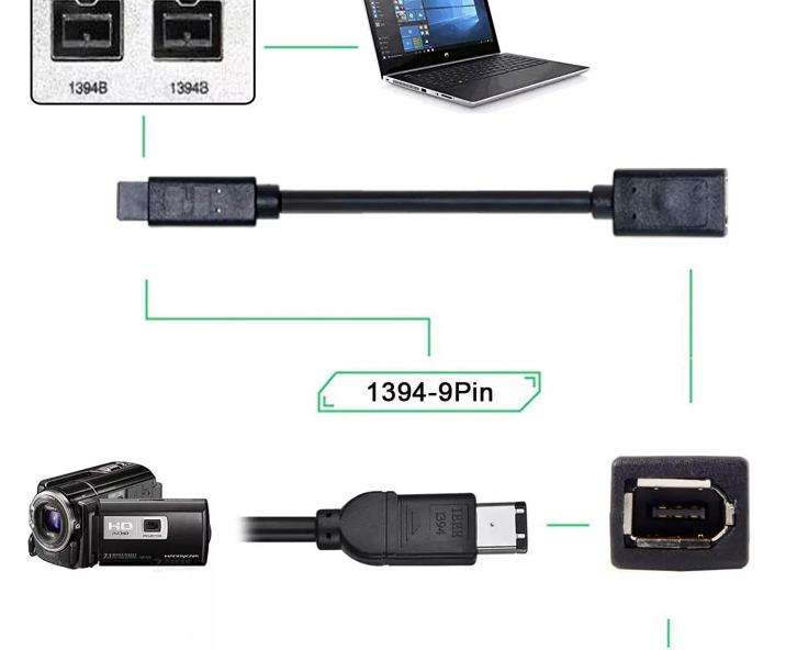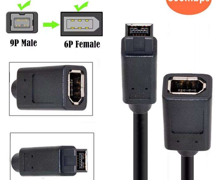 1pc Câble IEEE 1394 6 broches femelle vers 1394b 9 broches mâle Firewire 400 à 800 Adaptateur