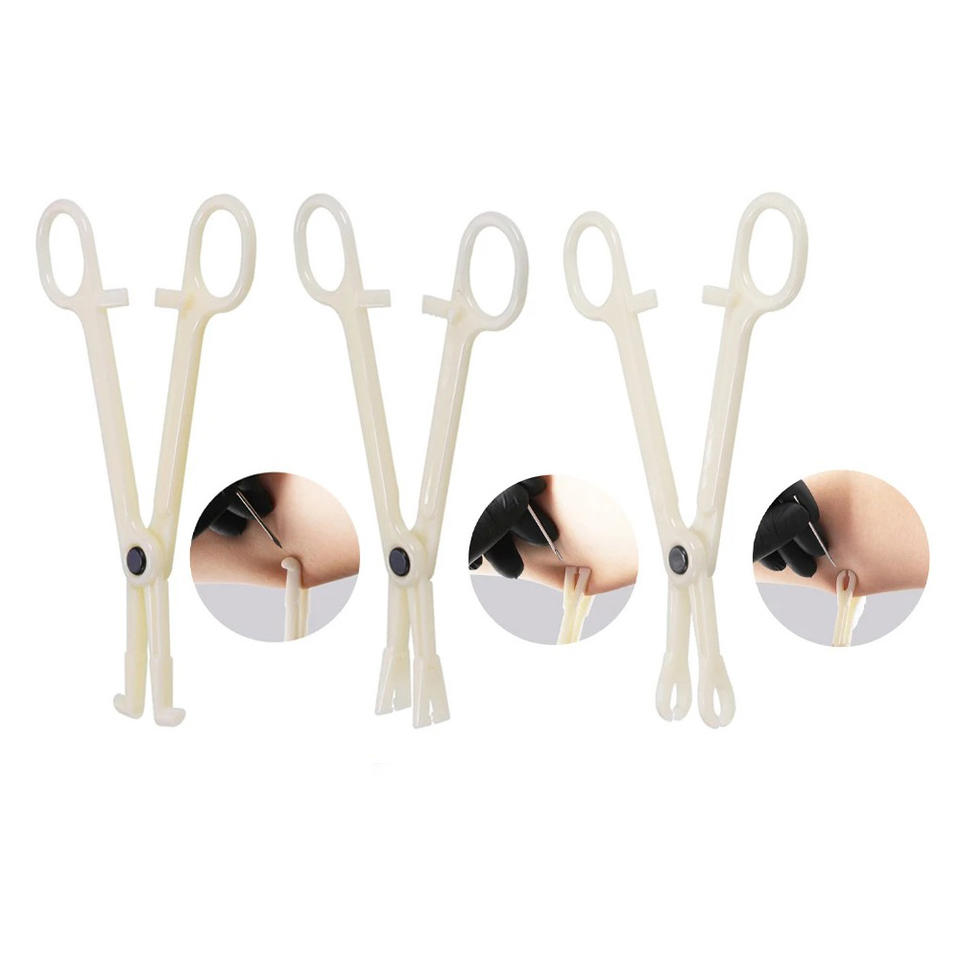 Pince à piercing jetable professionnelle en acrylique pour piercing d'oreille, lèvre, nombril, nez, septum ouvert rond, 1 pièce