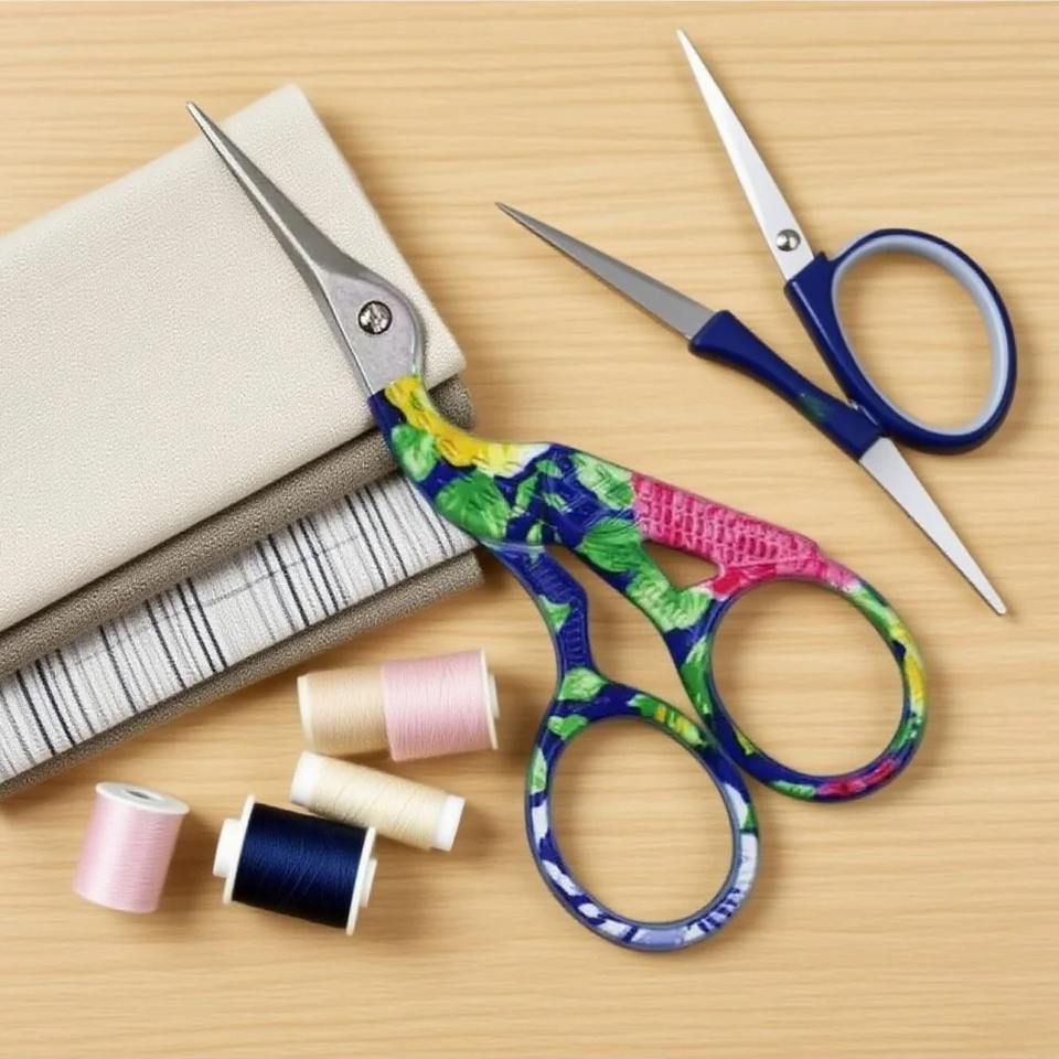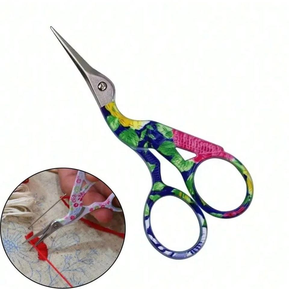 1 pièce Ciseaux de couture rétro vintage noirs, motif grue, pour point de croix, mignons, petits, outils de couture manuels