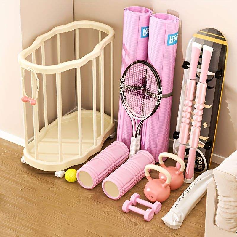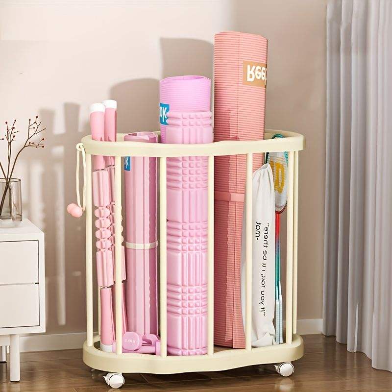 1 panier de rangement roulant grande capacité pour équipement sportif, tapis de yoga et autres, pour salle de sport