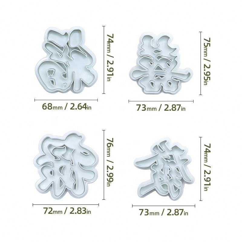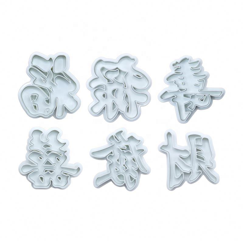 1 pièce Moule DIY en plastique pour pâtes et gâteaux, à motifs de caractères chinois Fu Lu Shou Fu Fu Fai, outil de pâtisserie pour emporte-pièces