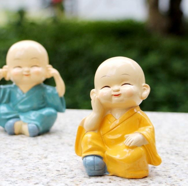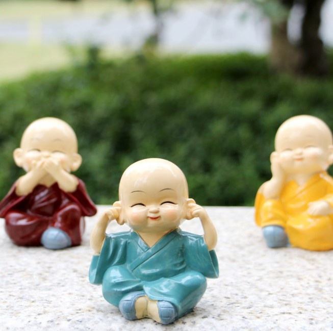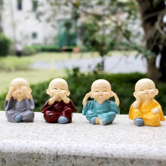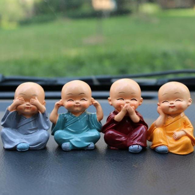 1set = 4pcs Chaque Set Cute Resin Little Buddha Statue Small Quantity Laughing Monk for Car Decor