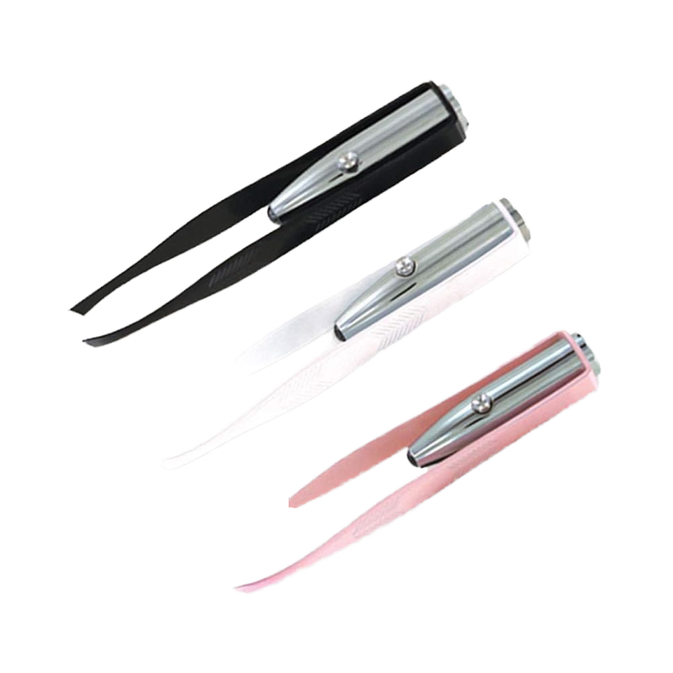Pince à épiler en acier inoxydable éclairée par LED de 1er choix pour les sourcils et les cils, design à pointe inclinée pour une utilisation facile