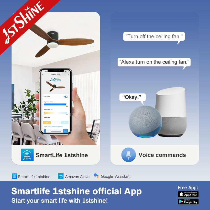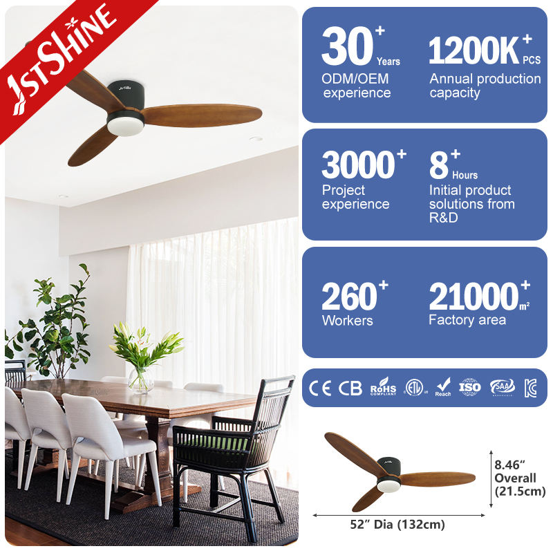 1stshine Ventilateur de plafond 52 pouces 3 pales en bois Ventilateur de plafond décoratif Ventilateurs de plafond à économie d'énergie