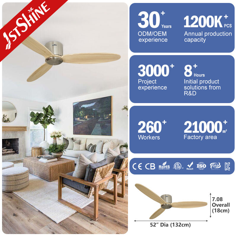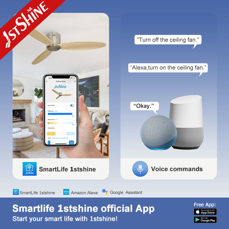 1stshine Ventilateur de plafond Chambre à coucher Efficace Moteur DC Stable Faible Bruit 52 Pouces Télécommande Ventilateurs de plafond
