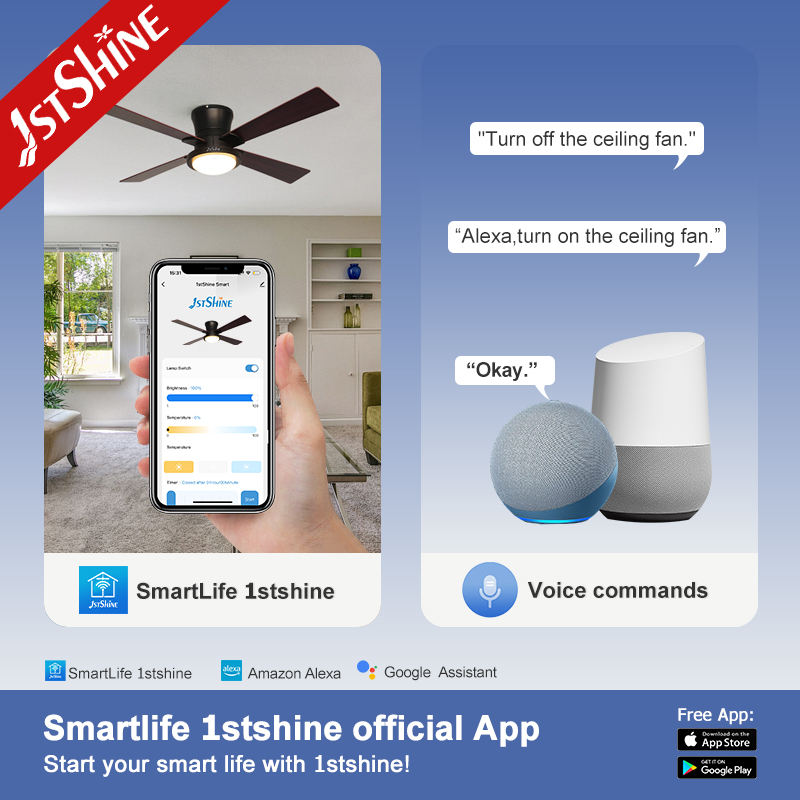 1stshine Ventilateur de plafond Flush Fancy LED Lighting Télécommande à économie d'énergie Ventilateur de plafond de 48 pouces avec télécommande