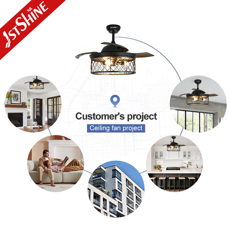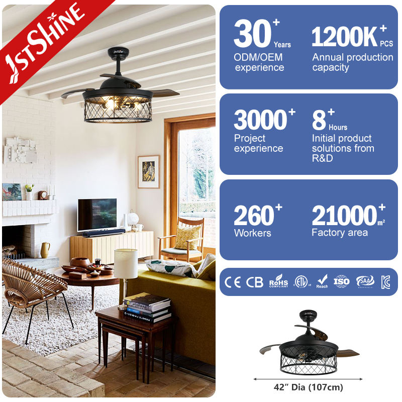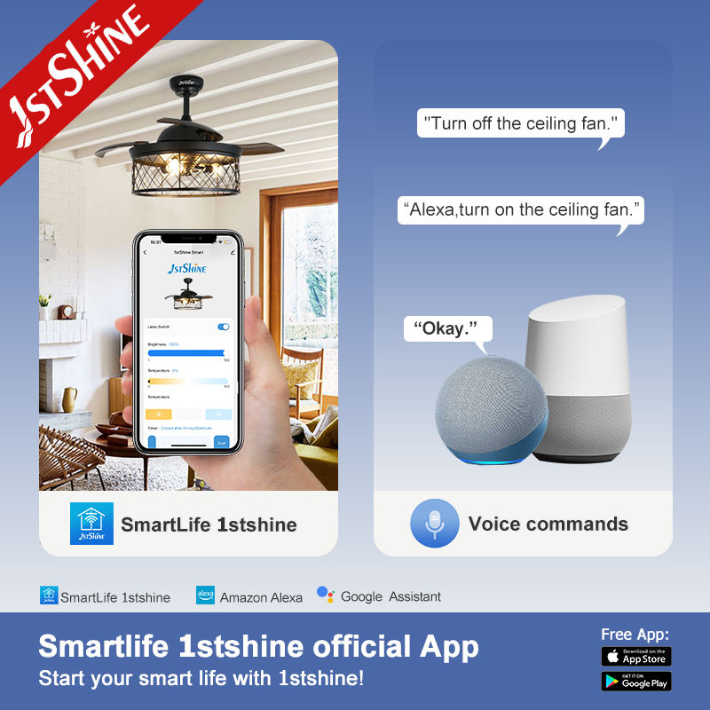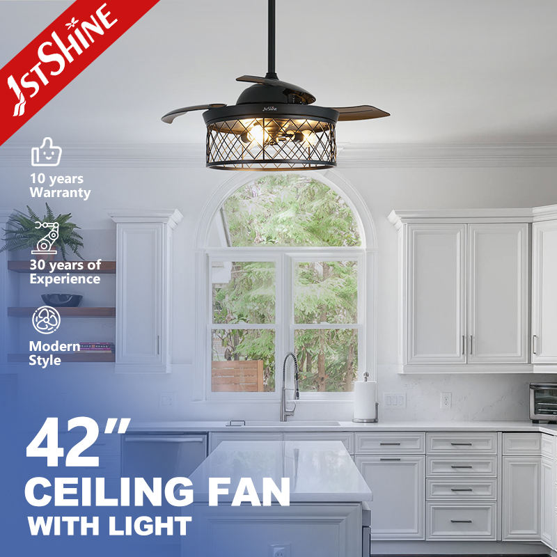 1stshine Ventilateur de Plafond Design Fer Pliable PC Lames Télécommande 42 Pouces Rétractable Ventilateur de Plafond Lumière