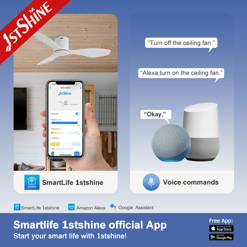 1stshine Ventilateur de plafond Profil bas 3 pales ABS blanches Gain de place Ventilateur de plafond blanc sans lumière
