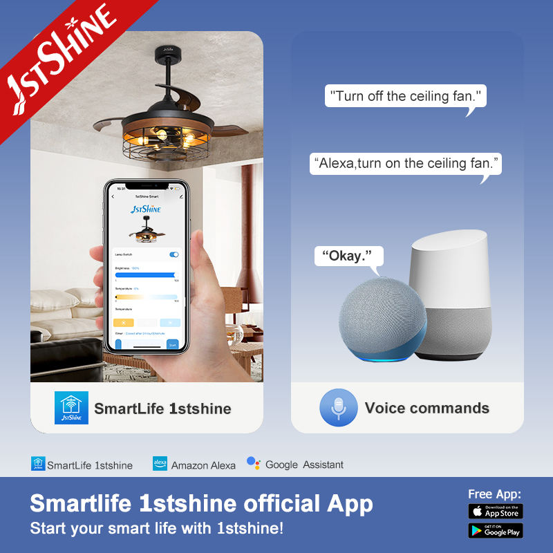 1stshine Invisible Ceiling Fan Decorative Lighting PC Blade DC Motor Invisible Ceiling Fan with Light