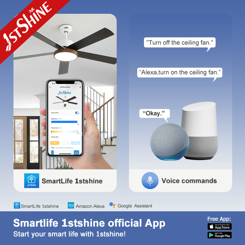 1stshine LED ventilateur de plafond 54 pouces 6 vitesses vent confortable 3 couleurs LED lumière dimmable ventilateur de plafond avec télécommande