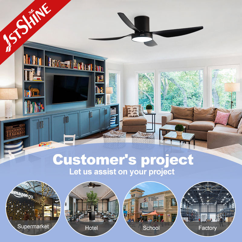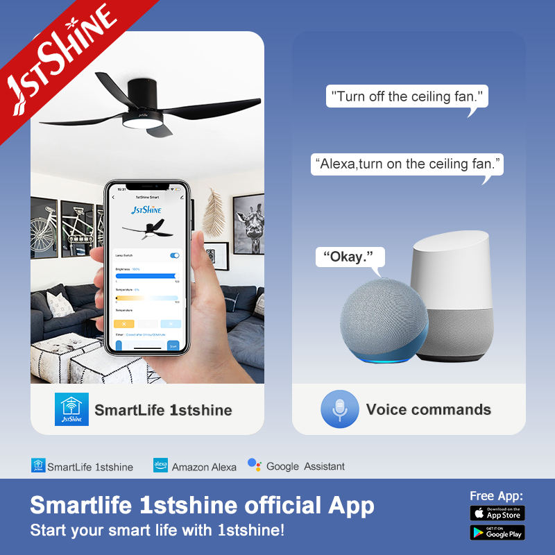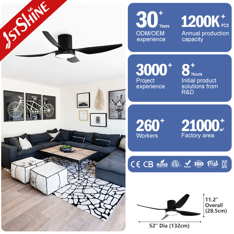 1stshine ventilateur de plafond LED noir 52 pouces économie d'énergie 4 pales ABS ventilateur de plafond avec lumière LED