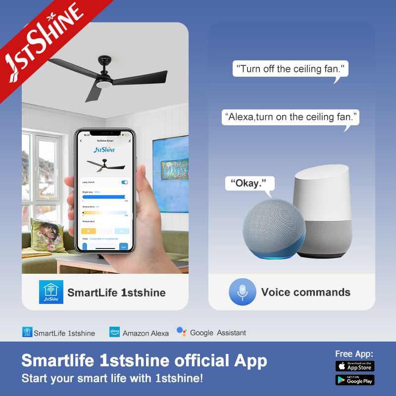 1stshine Ventilateur de plafond à LED Noir ABS Lames DC Moteur en cuivre Ventilateur de plafond intelligent à distance avec lumière LED