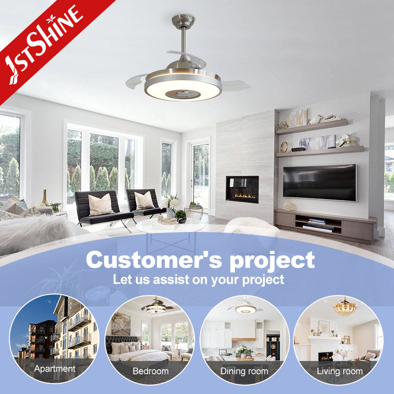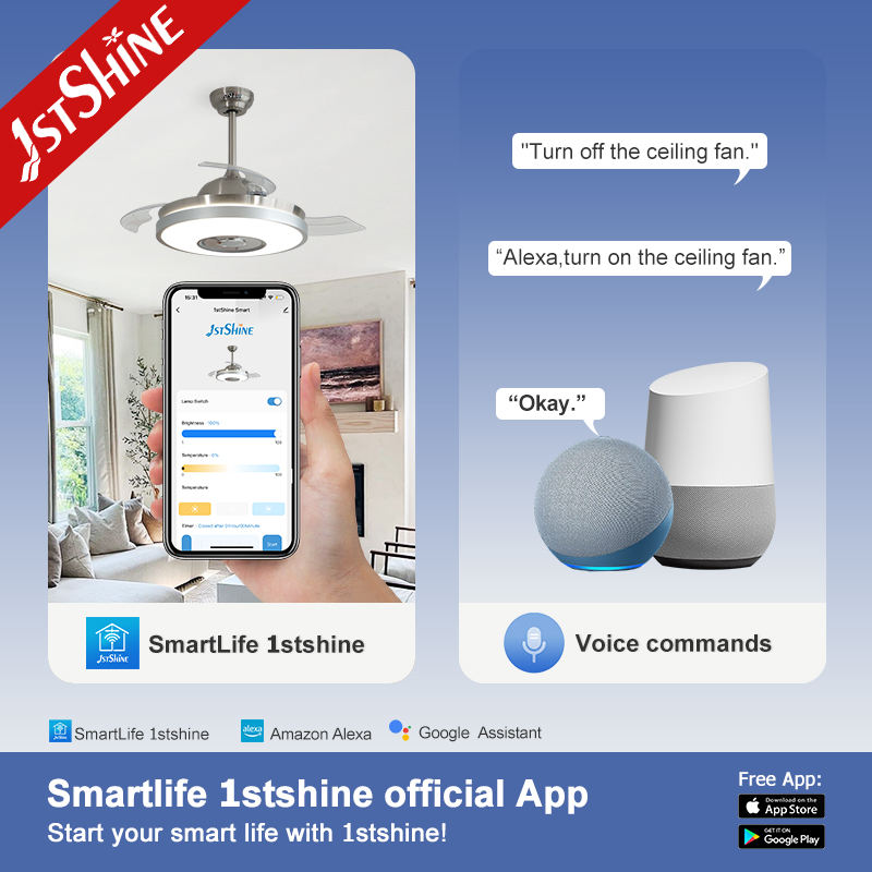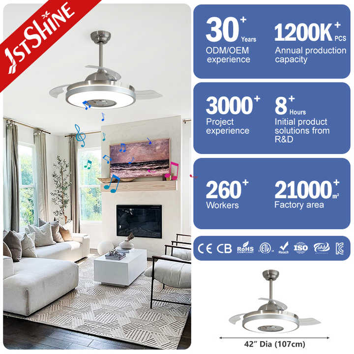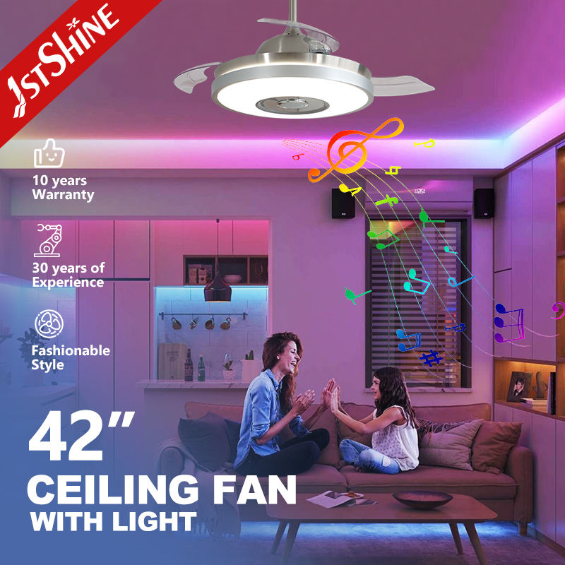 1stshine LED ventilateur de plafond vente chaude HIFI haut-parleur télécommande intelligent ventilateur de plafond rétractable avec lumière RVB
