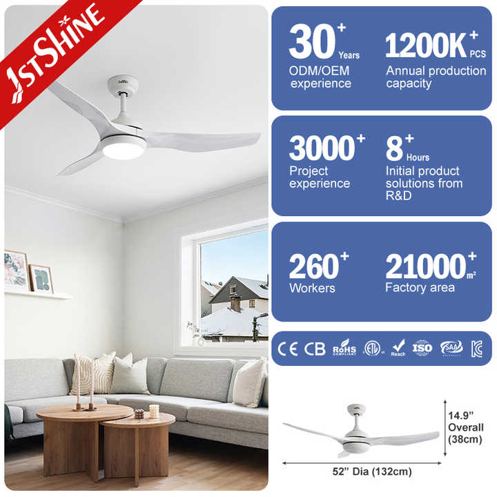 1stshine LED ventilateur de plafond fabricant meilleur prix bas quantité minimale de commande personnalisé 52 pouces ventilateur de plafond avec lumière