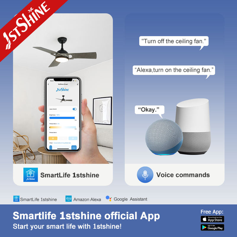 1stshine Ventilateur de plafond à LED décoratif à faible consommation d'énergie 6 vitesses Moteur DC Ventilateur de plafond à LED