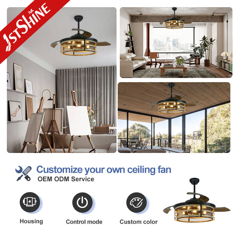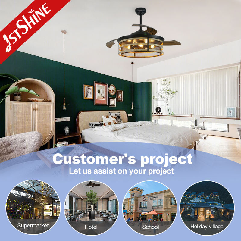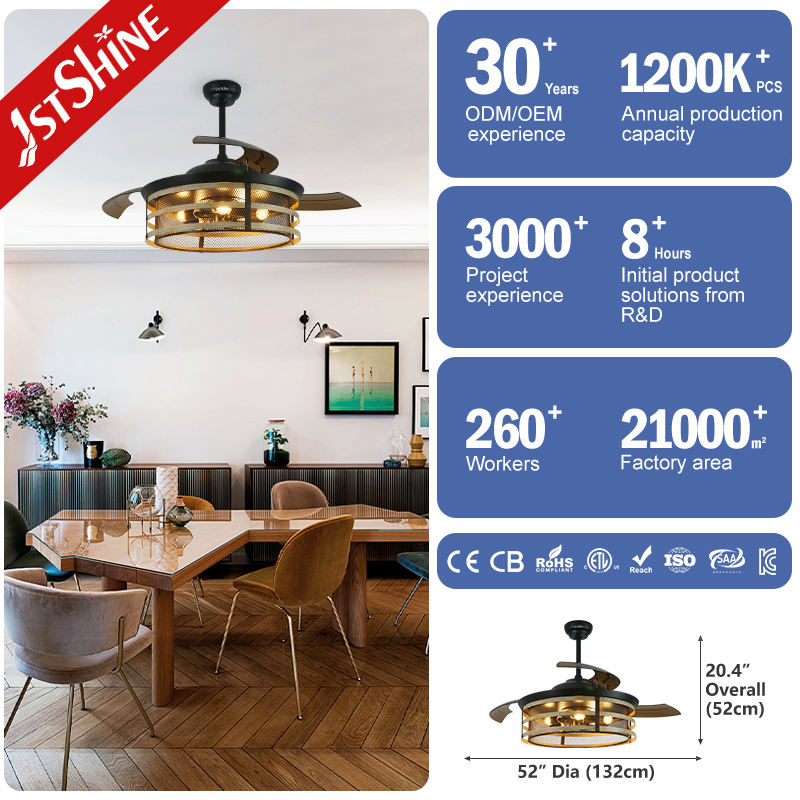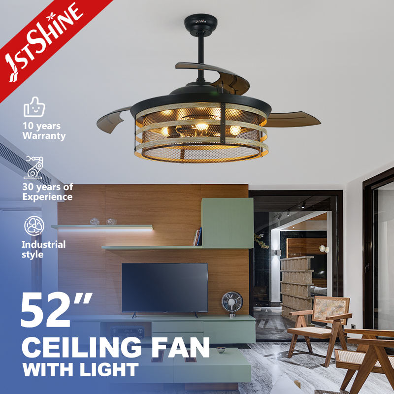 1stshine Ventilateur de plafond rétractable Haute qualité 52 pouces PC Lames Ventilateur de plafond invisible avec lumière LED