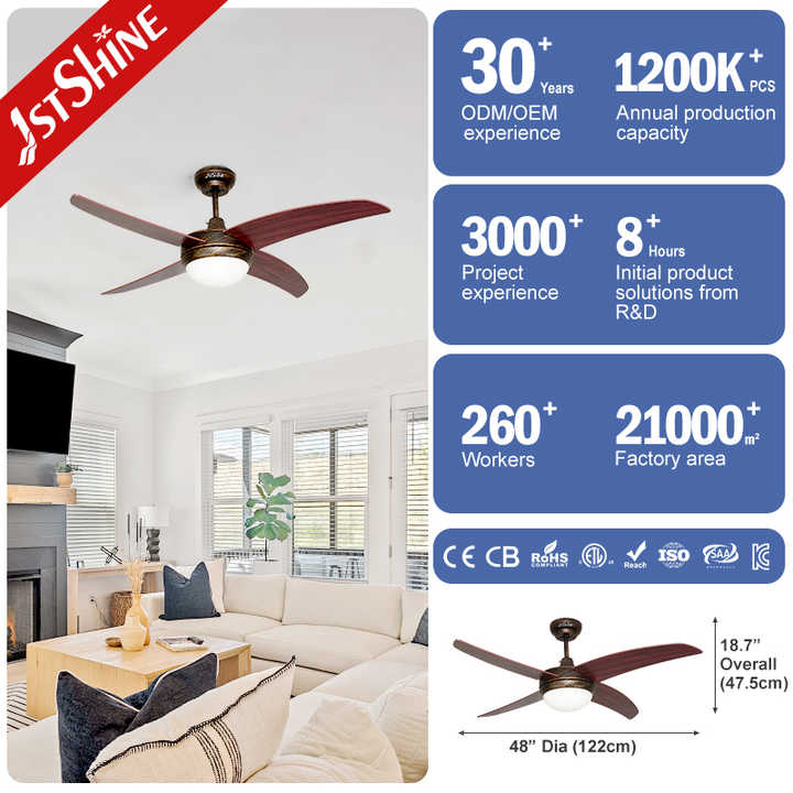 1stshine Style rétro 48 pouces lame MDF 6 vitesses télécommande DC Led ventilateur de plafond avec lumière
