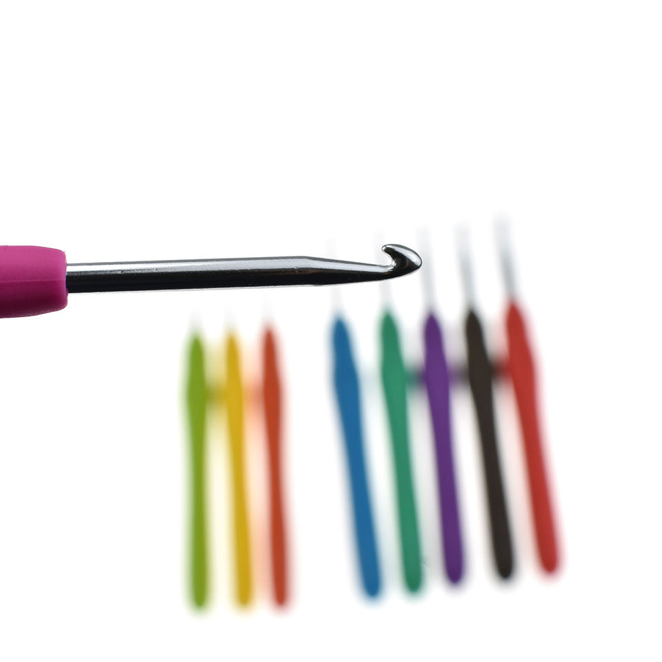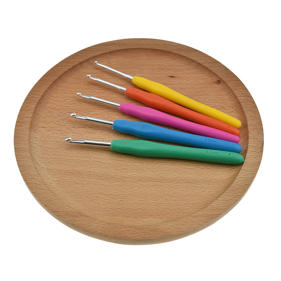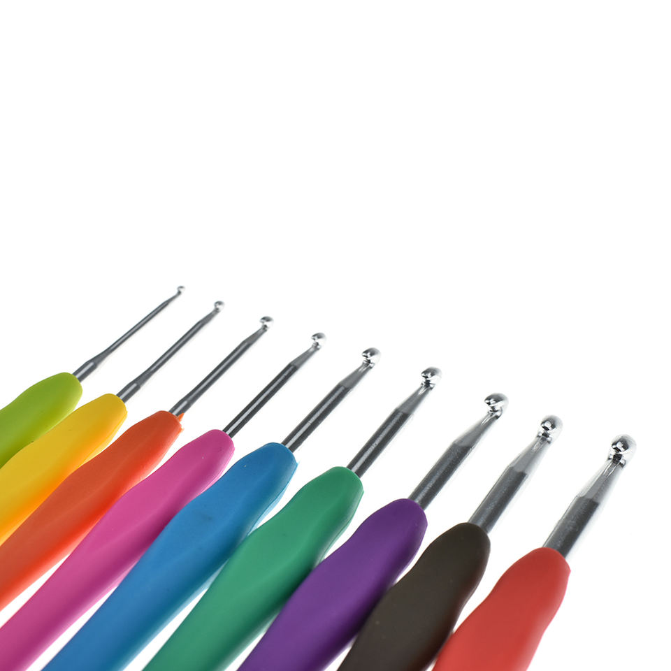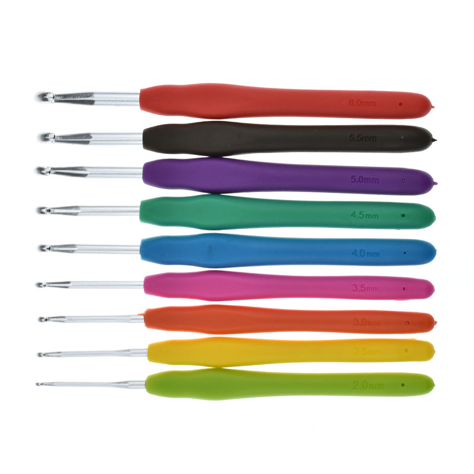 2.0 ~ 6.0mm ensemble complet fantaisie 9 pièces arc-en-ciel ergonomique TPR caoutchouc souple poignée en plastique métier à tisser en aluminium crochets