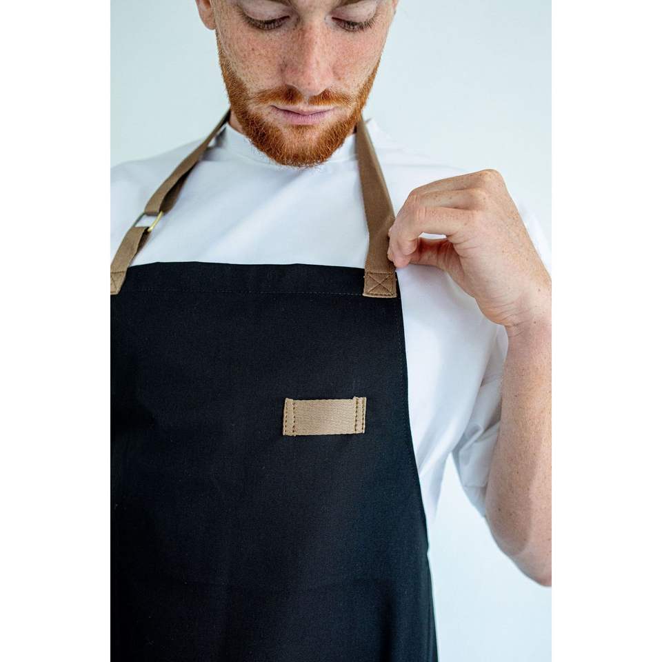 Tablier de cuisine 2.0 en coton noir sans manches avec logo brodé pour barbecue, usage domestique et jardin, style délavé