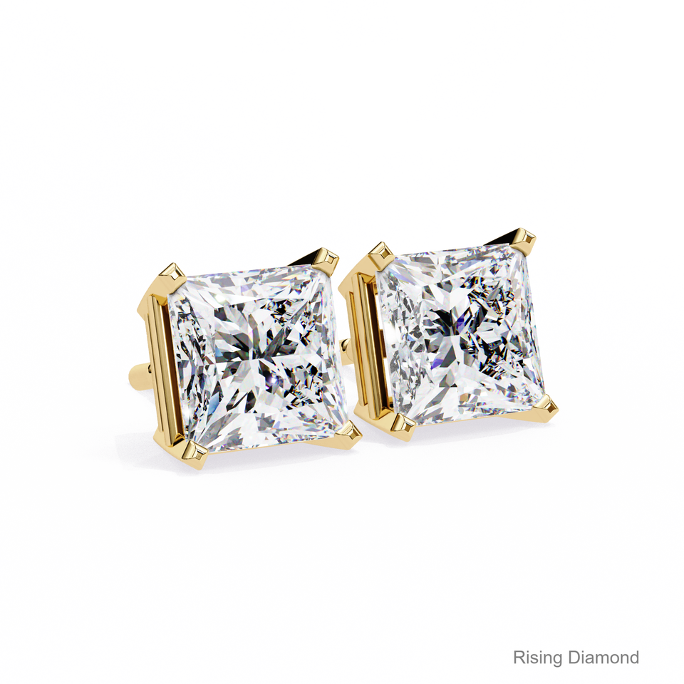 Boucle d'oreille en diamant de 2.0 ct taille princesse cultivée en laboratoire or jaune CVD boucle d'oreille en diamant cadeau d'anniversaire pour elle