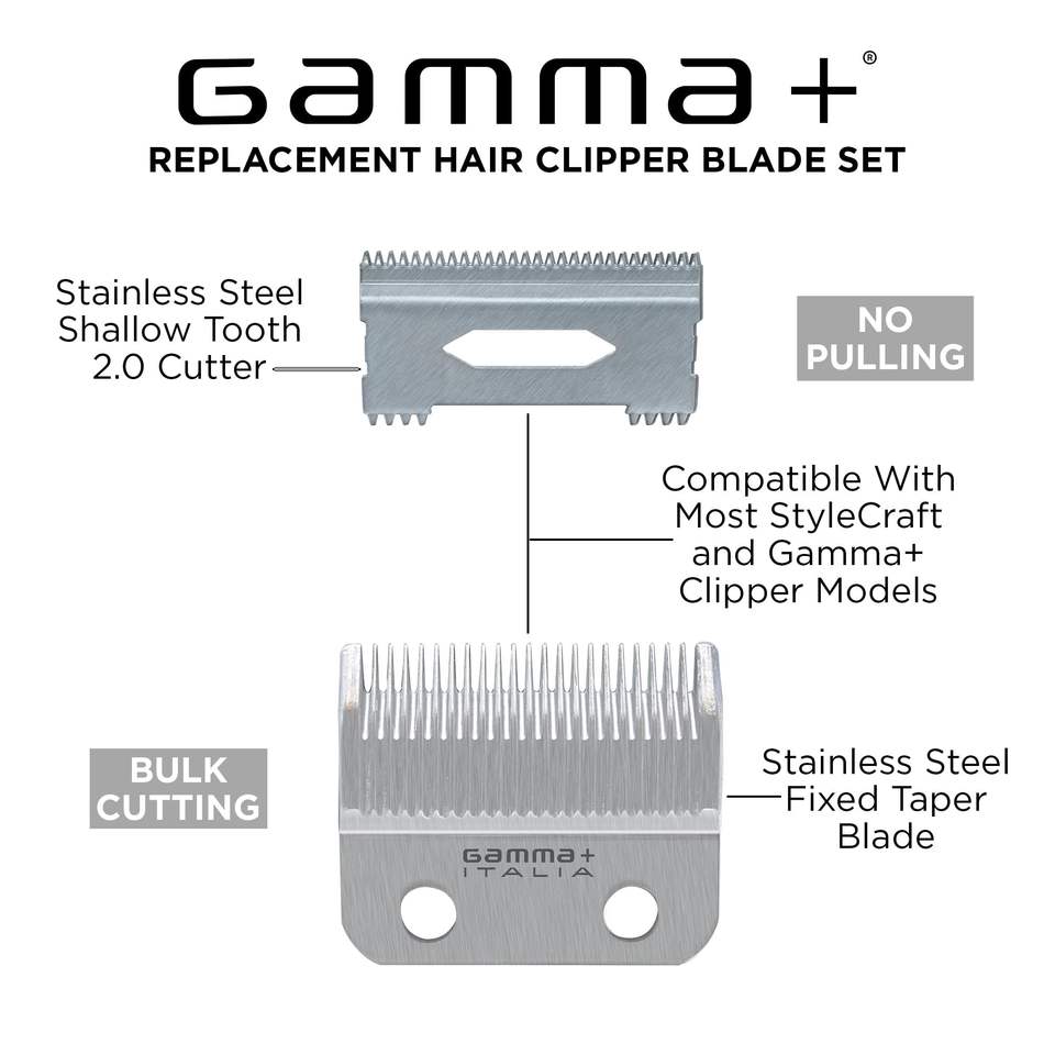 Kit de 2 Lames de Coupe 2.0 avec Lame de Rechange Fixe en Acier Inoxydable pour Tondeuse à Cheveux Professionnelle, Type Prise US