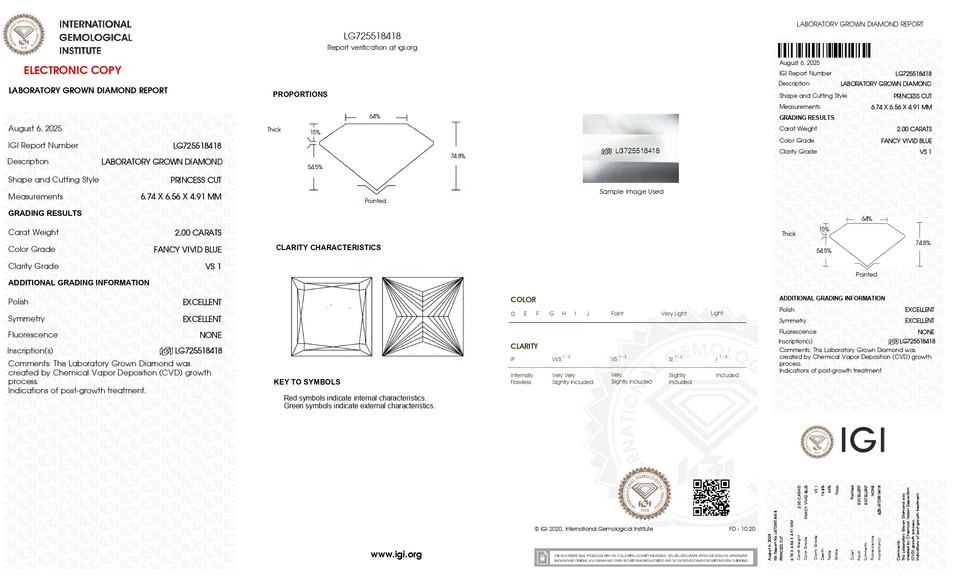 Princess CVD 2.00 CT. Fancy Vivid Blue-VS1