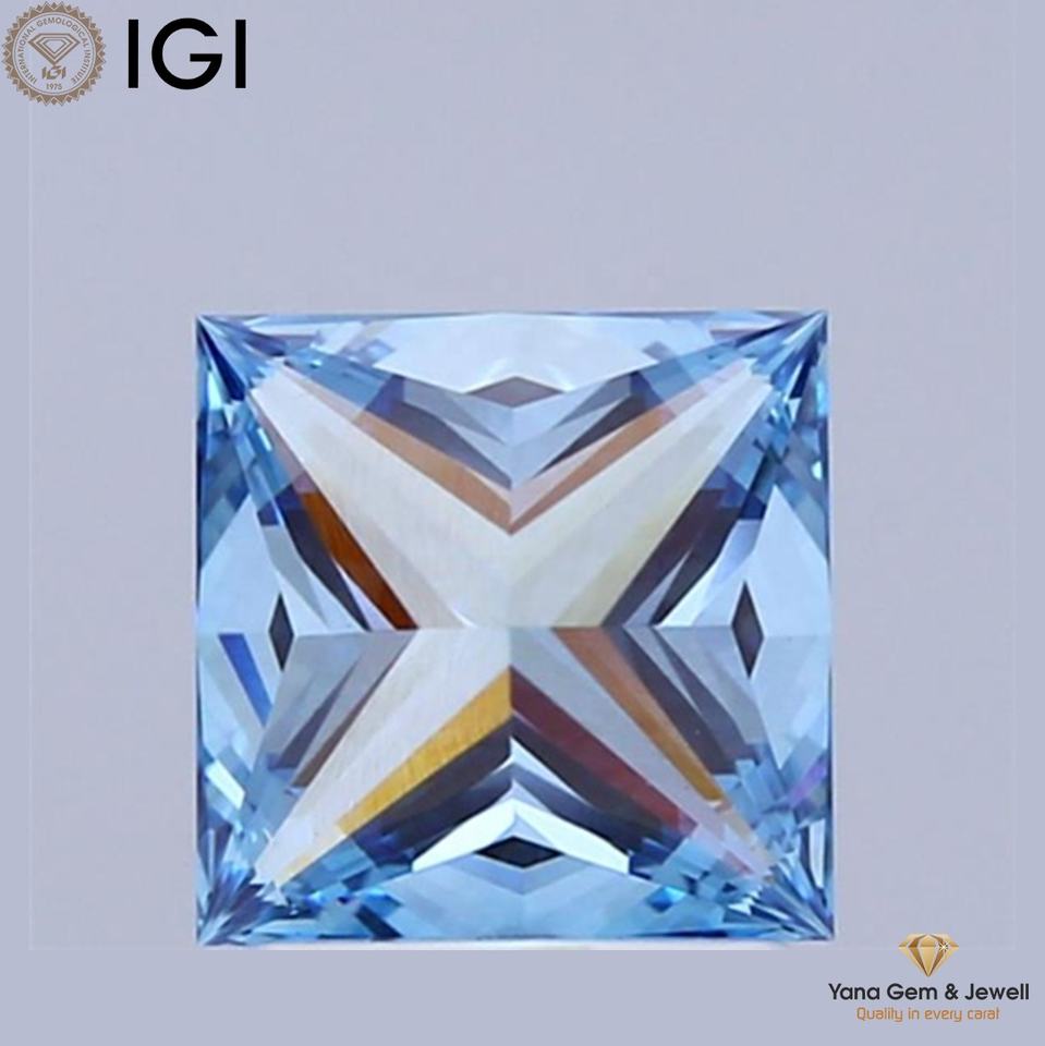 Diamant de laboratoire cultivé CVD de 2,00 carats, couleur bleu vif fantaisie, clarté VS1, taille princesse, avec certificat IGI pour création personnalisée