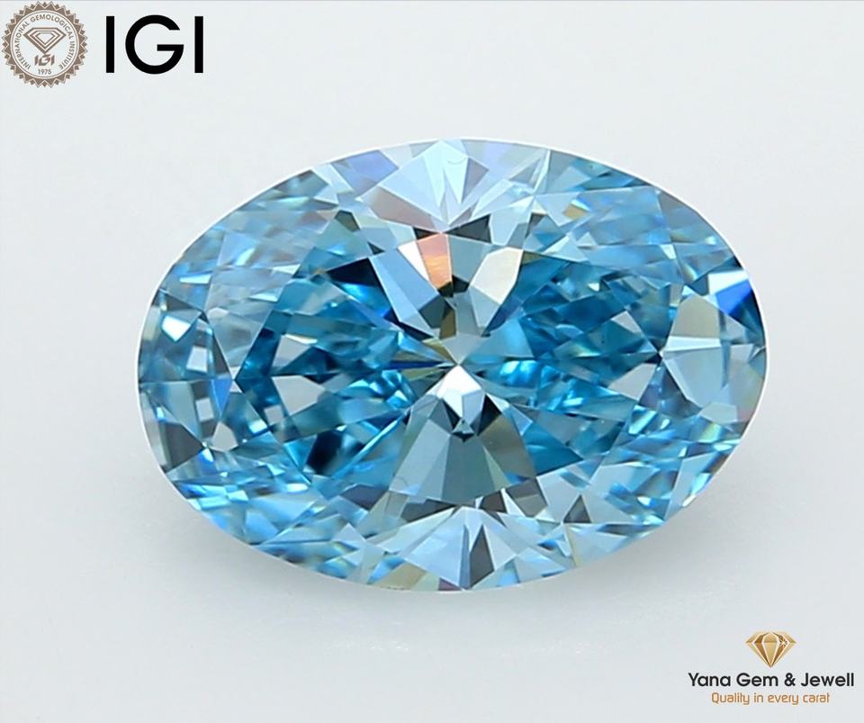 Numéro de Type:Oval CVD 2.00 CT. Fancy Vivid Blue-VVS2