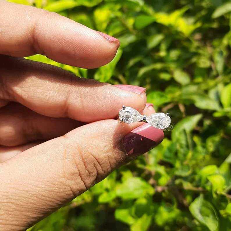 2.00 Carat Pear Cut Lab Grown Diamonds Engagement Two Stone Ring Fine Jewelry for Wedding Party Gift 14K White Gold