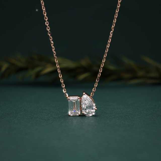 Collier pendentif en or rose 14 carats avec diamant de laboratoire taille émeraude de 2,00 carats, tendance, pour fiançailles, mariage, léger, luxueux, quotidien