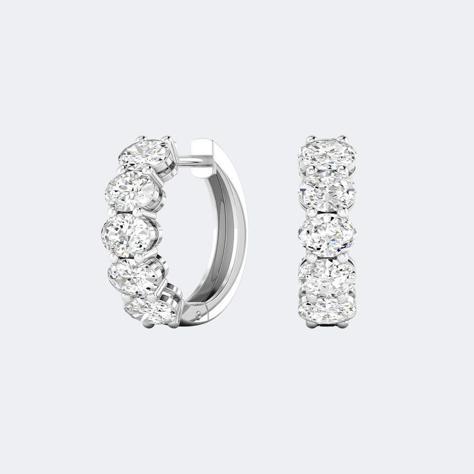 Boucles d'oreilles créoles Huggie en or jaune 2.00CTW avec diamant de laboratoire taille ovale VVS2 EF, sertissage à griffes partagées, bijoux de luxe brillants à charnière