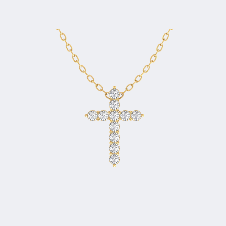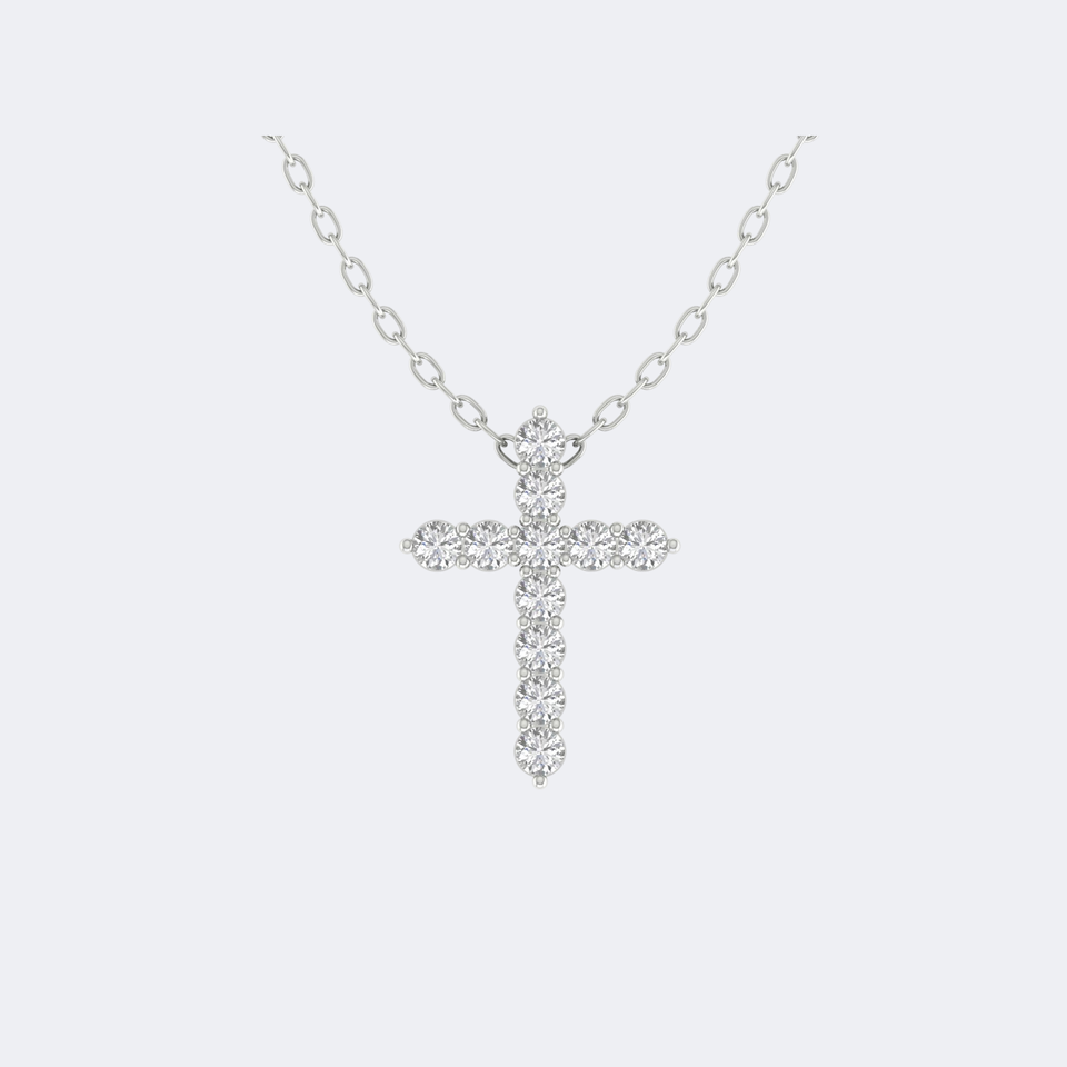 Collier pendentif croix serti de pierres rondes 2.00CTW