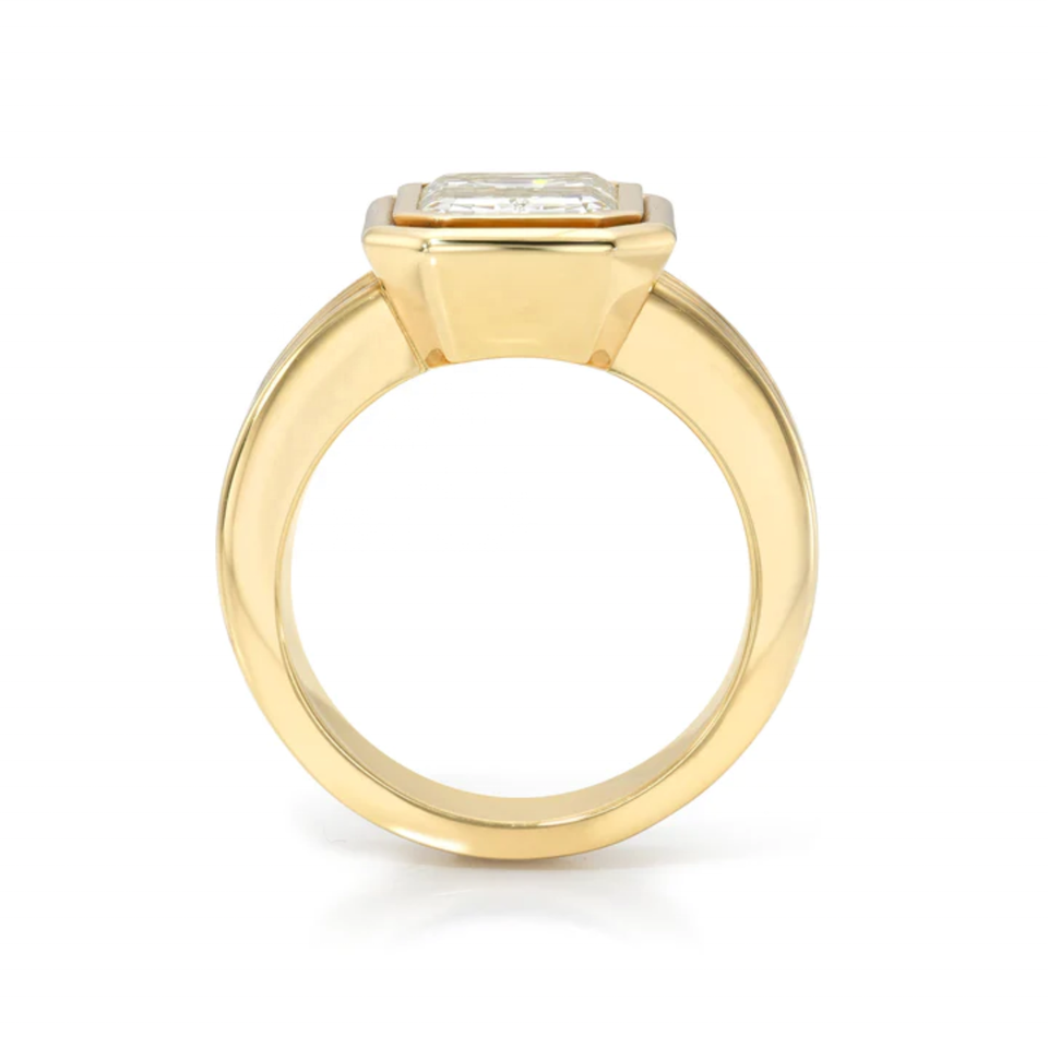 2.00Ct Emerald Cut Lab Grown Diamond Wedding Jewelry Ring Rhodium Silver Parties For Men's Ring 14k Yellow Gold