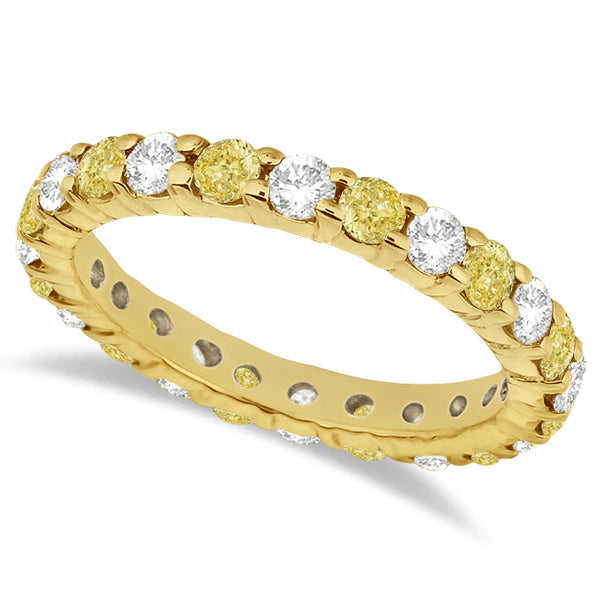 2.00ct Canary Yellow & White Emerald Cut Diamond Eternity Ring 14k Yellow Gold with Rhodium Plating IGI Certified Fine Jewelry