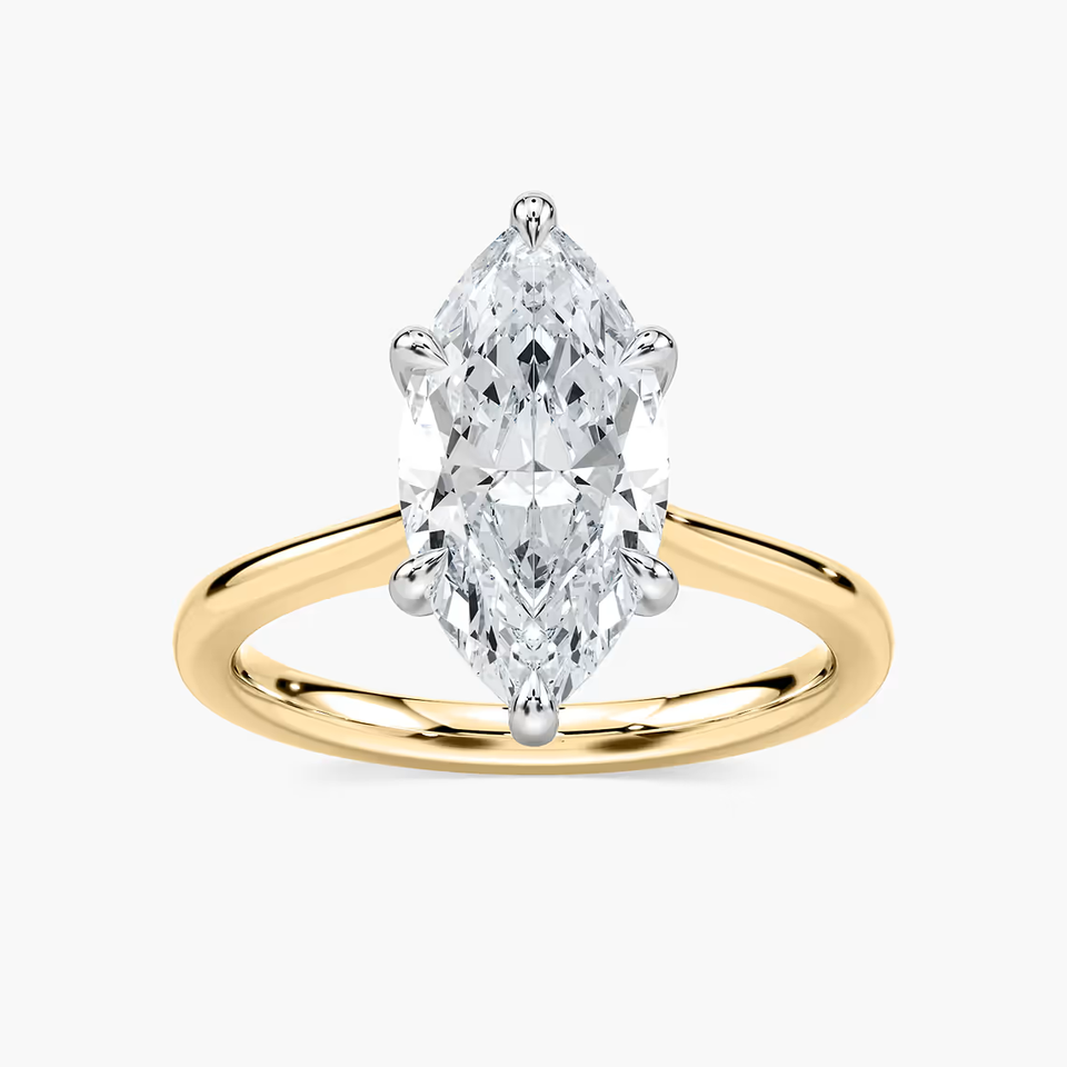 Bague en diamant de laboratoire taille marquise de 2,00 carats, or massif 14 carats, design solitaire élégant