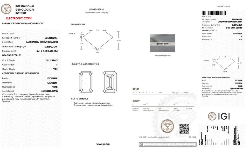 2.01 Carat F Couleur VS2 Clarté Loose Lab Grown Solitaires Brillant Emerald Cut Shape Lab Grown Diamonds avec Certificat IGI