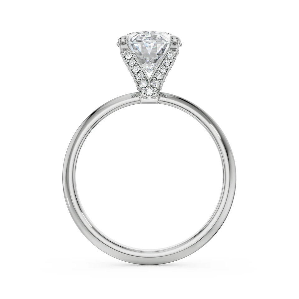 Bague de fiançailles en diamant de laboratoire taille ovale 2,05 CTW certifiée IGI, or massif 14 carats, solitaire avec pavé caché, pour femme