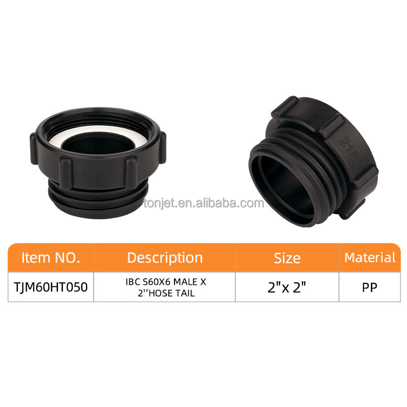 Adaptateur de raccordement Camlock 2 1/8" BSP femelle x S60*6 mâle, en plastique PP lisse, pour raccordement de citerne IBC