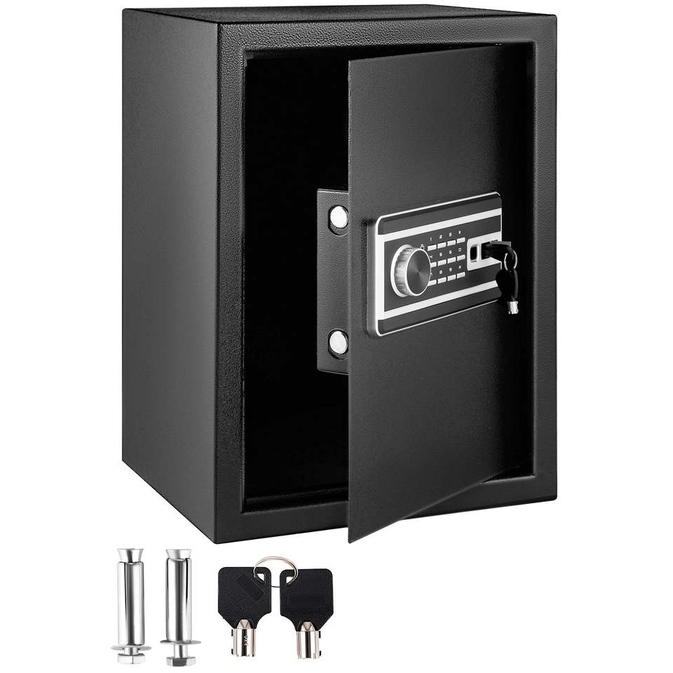 Coffre-fort 2,1 pi³ avec lecteur d'empreintes digitales et clavier numérique, en acier Q235, pour argent liquide et bijoux, avec 2 clés, sûr et sécurisé