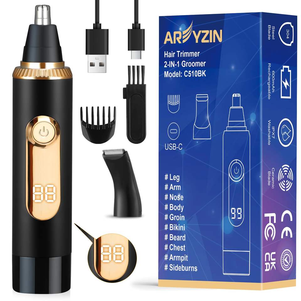Tondeuse à sourcils et nez rechargeable USB avec écran LED 2-en-1 pour hommes et femmes, tondeuse en plastique indolore pour oreilles et sourcils, idéale pour les voyages en camping-car