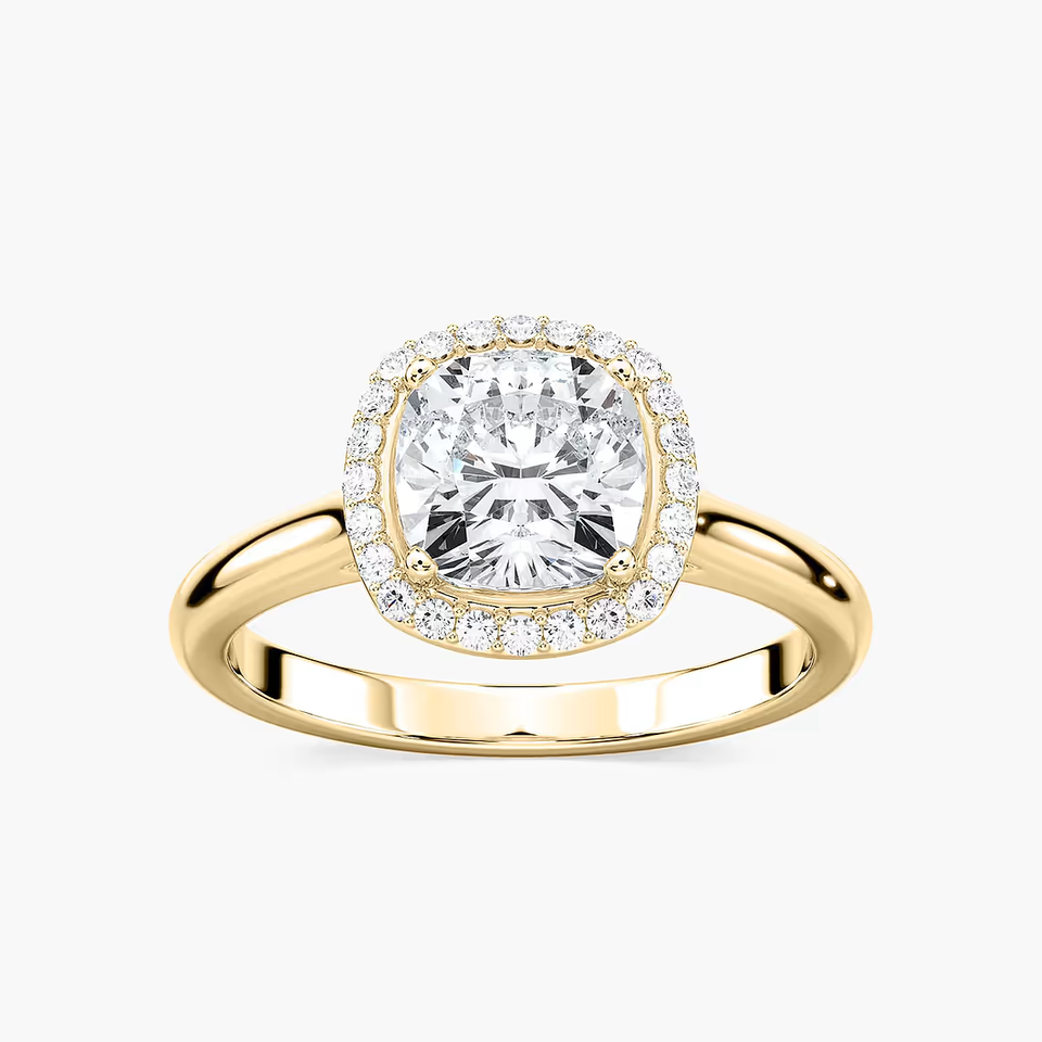Bague de fiançailles halo en diamant de laboratoire taille coussin 2,10 CTW certifiée IGI en or massif 14 carats