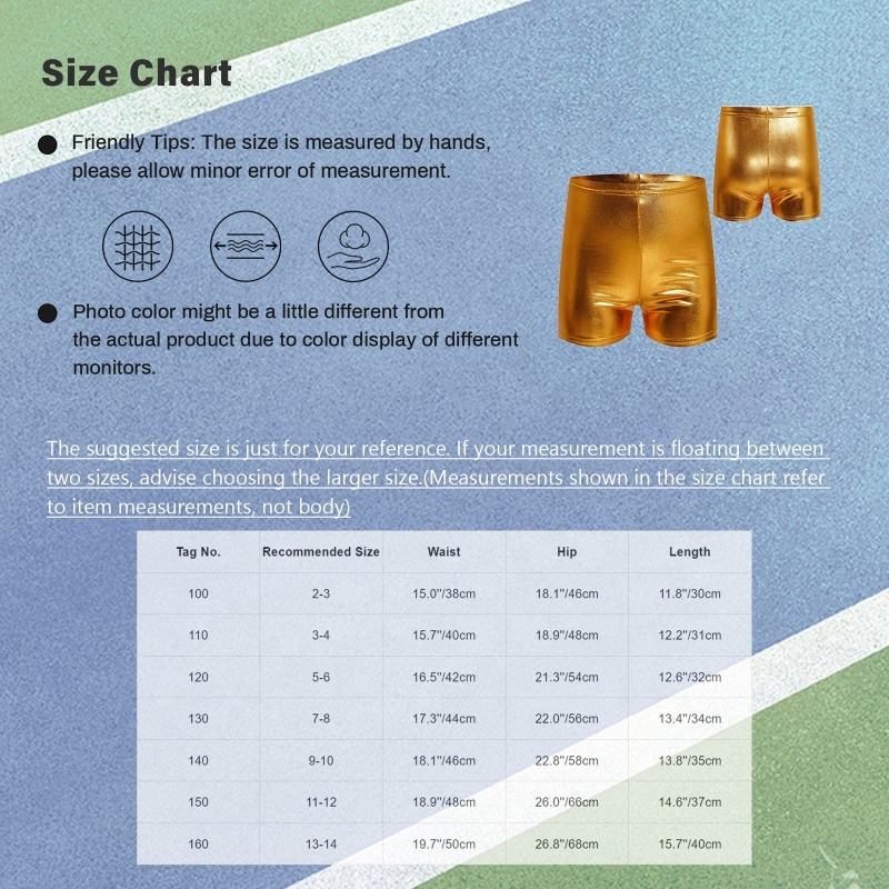 2-14 Kids Boys Girls Metallic Shorts Cheerleading Practice Costumes Clothes Contemporary For Gymnastics Competition Performance