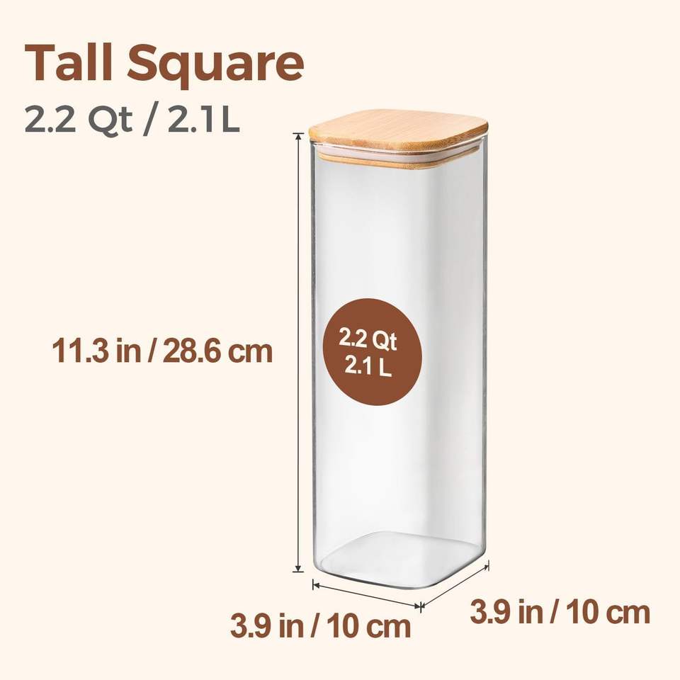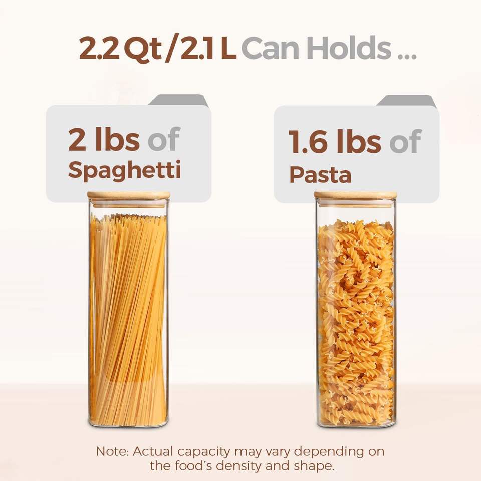 Lot de 3 bocaux de conservation en verre transparent de 2,2 L pour pâtes et spaghetti, avec couvercles hermétiques, pour le stockage des aliments, des bouteilles et des pots