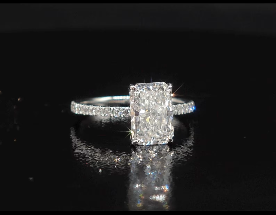 2.20 CT Radiant Cut Lab Grown Diamond Engagement Ring Hidden Halo Solitaire Setting IGI Certified 14K Gold Bridal Ring for Women